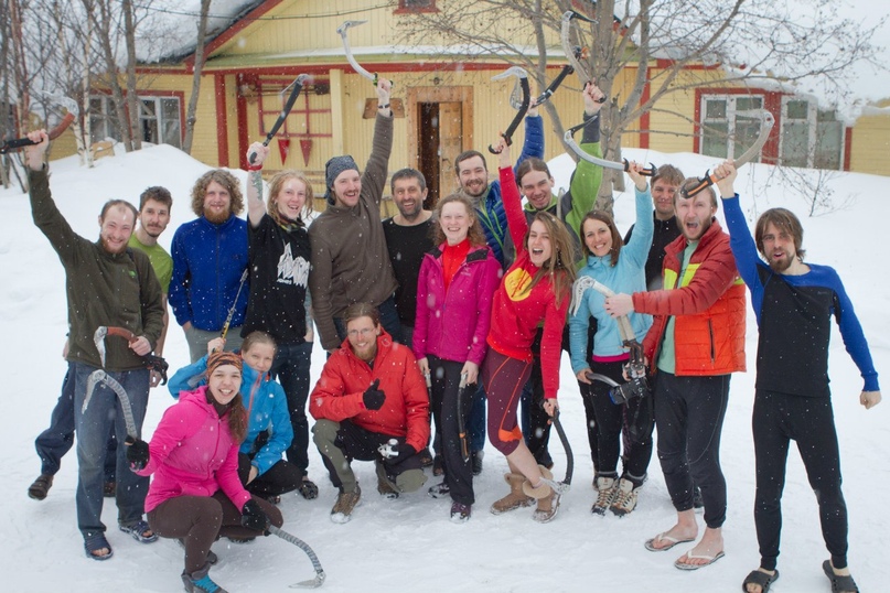 Как видите, компания собралась не то чтобы слабаков. У всех были более-менее задатки, ребята тренированные. А инструктор у нас была снежный барс, но она не ходила до этого в Хибинах (если ошибаюсь, простите).