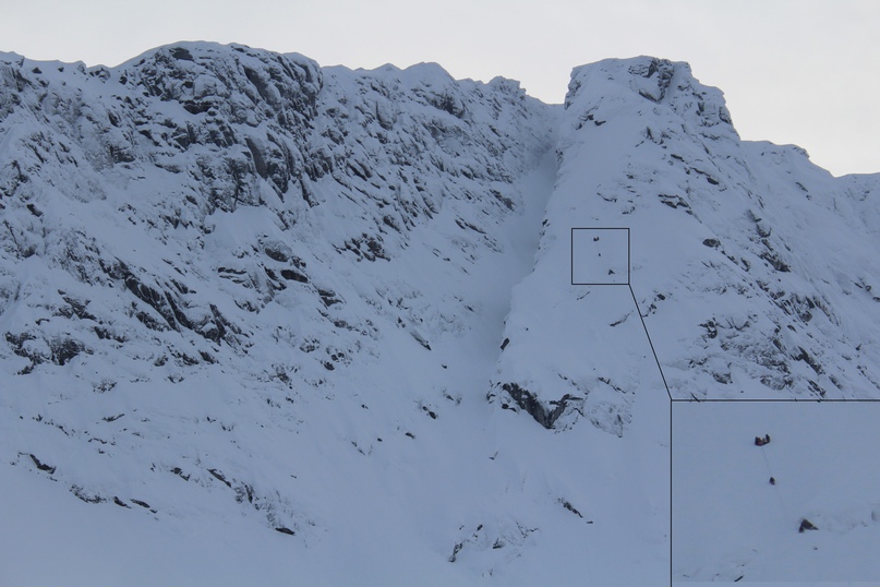 Потом мы прошли «тройку А». Все скалы, за исключением пары таких же стеночек как на двойке, были засыпаны снегом. Мы просто шли, почти без страховки, по крутым снежным полям. Мне было страшно. Через 6 лет на этом маршруте лавиной сорвало целую группу, с летальными исходами.